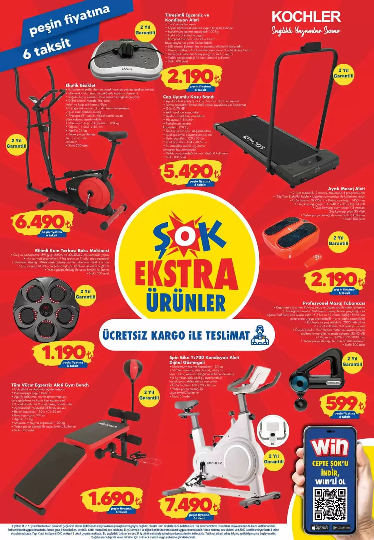Şok aktüel 11 Eylül 2024 kataloğunun fırsat ürünleri ile donatılmış olan diğer sayfa detaylarında ki büyük indirimlerle yeni indirim haftasında sizlere sunulacak kampanya listesinde ki ürünleri saymakla bitmiyor. Yeni Şok Aktüel kataloğu olan 11 Eylül 2024 Şok aktüel ürünler kataloğunun kampanya gruplarında; Elektrikli Ev Aletleri, Ev Eşyaları ve Ofis Mobilyası, Spor ve Egzersiz Aletleri, Helly Hansen markalı Giyim Ürünleri ile Temel ihtiyaç grubunda indirimli ürünleri sizlerden büyük ilgi görecektir. İşte 18 Eylül 2024 tarihine kadar Hem Şok’ta Hemde Cepte Şok’ta geçerli olacak Şok Aktüel kataloğunda yer alan fırsat ürünlerinde; 2 yıl garantili ücretsiz kargo ile teslimat avantajlı Simfer 4242 Beyaz 42 Litre Midi Fırın 2,499 TL. Simfer 7033 İnox 70 Litre Turbo Midi Fırın 3,699 TL. Simfer 23 Litre İnox Mikrodalga Fırın 3,499 TL. Simfer Retro 20 Litre Mikrodalga Fırın 3,749 TL. Şok aktüel ürünler bu kadarla sınırlı değil tabi ki; uzun zamandır kampanya listesinde görmek istediğiniz Spor ve Egzersiz grubunda fırsat ürünleri bu hafta Şok Aktüel 11 Eylül 2024 kampanya listesinde; 2 yıl garantili olarak satışa sunulacak Eliptik Bisiklet 6,490 TL. Ritimli Boks makinesi ve Kum Torbası 1,190 TL. Titreşimli Egzersiz ve Kondisyon Aleti 2,190 TL. Şok Katalog Bu Hafta kampanya listesinde ki bu hafta KOCHLER markalı 2 yıl garantili Cep Telefon Uyumlu Koşu Bandı 5,490 TL. Ayak Masaj Aleti 2,190 TL. Profesyonel Masaj Tabancası 599 TL. Spin Bike Kondisyon Aleti 7,490 TL. Gym Benc Tüm Vücut Egzersiz Aleti 1,690 TL. Yeni Şok Kataloğu 11 Eylül 2024 kampanyaları içeriğinde yer alan yeni dönemde geçerli diğer ürünler ise; Gardırop 4 Kapılı 3,999 TL. Kitaplık 5 Raflı 999 TL. Nefes 4 Raflı Çok Amaçlı Metal Ayaklı Dolap 699 TL. Arzu Çalışma Masası 1,099 TL. Kitaplık 3 Raflı 649 TL. Labtop Sehpası 449 TL. Çalışma Masası, Bilgisayar Masası, Ofis Masası 529 TL. Chantra Yönetici Koltuğu 3,999 TL. Sina Çalışma Koltuğu 3,899 TL. Fileli Çalışma Koltuğu 1,449 TL. Şok Aktüel 11 Eylül 2024 ürünleri olarak Çarşamba gününden itibaren Hem Şok’ta Hemde Cepte Şok’ta sizlere büyük indirimlerle Bayrama özel indirimlerle temel gıda, temizlik ve hijyen grubunda harika fırsat ürünleri 25 TL ve üzeri alışverişlerde Kasada Süper İndirim etiketi ile geçerli kampanyalı ürünle sizlere sunulacak.
